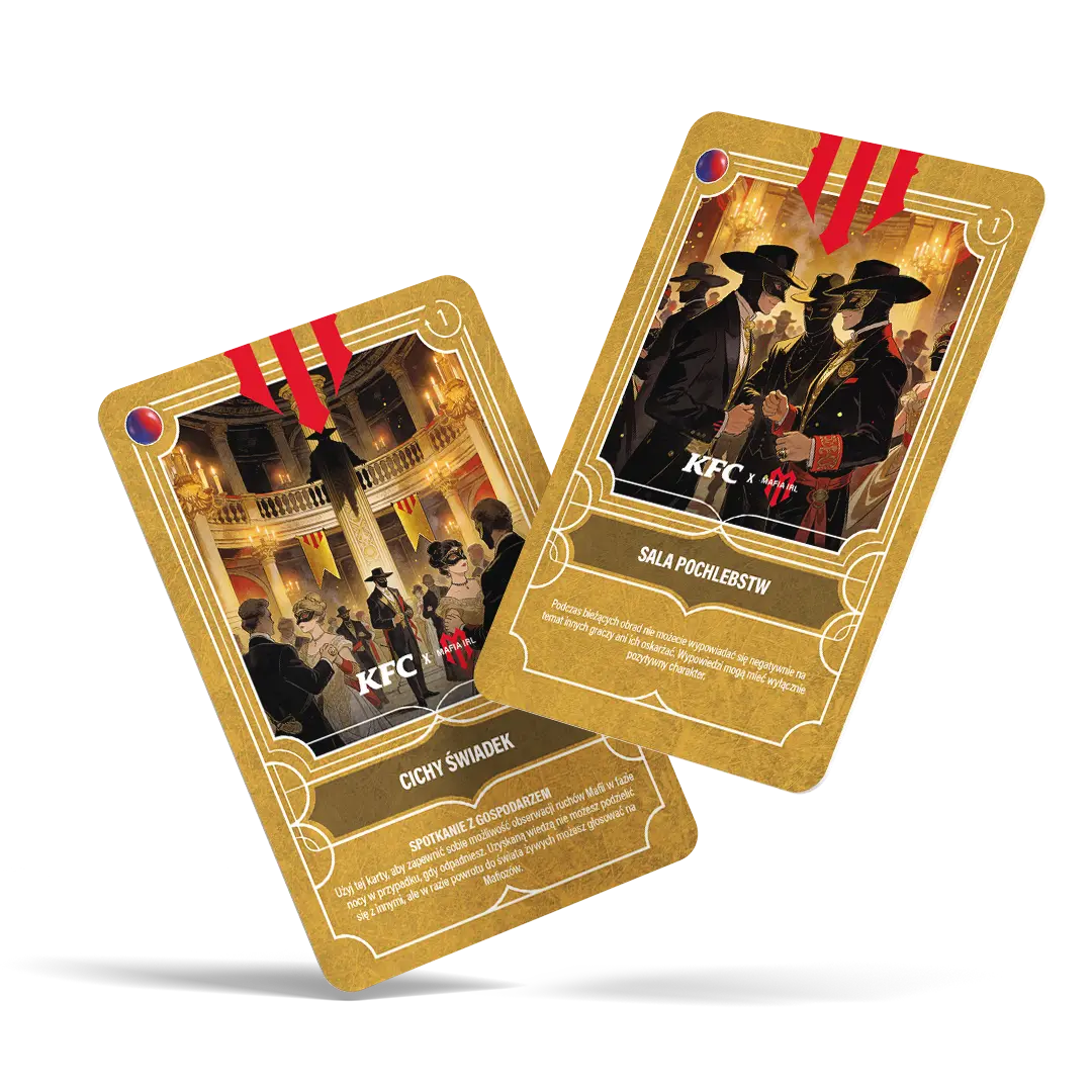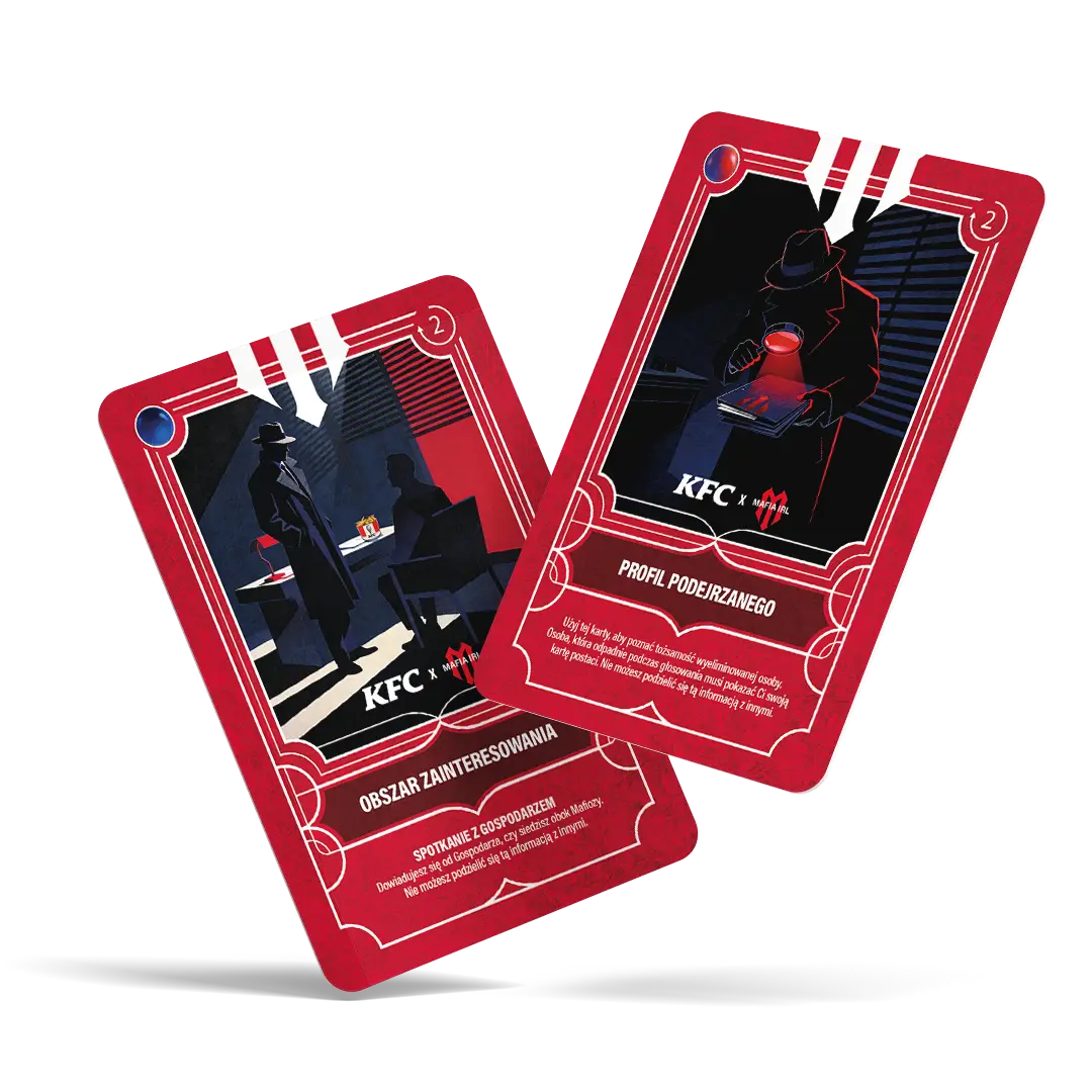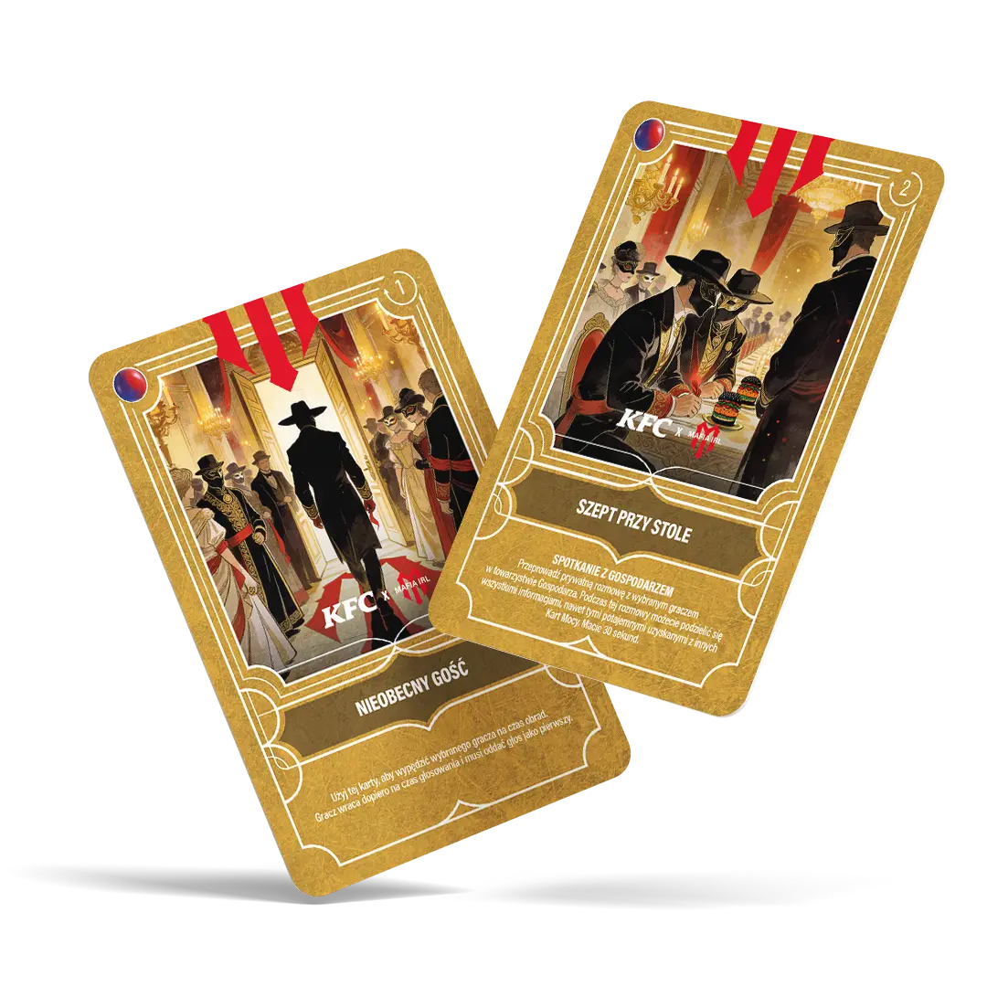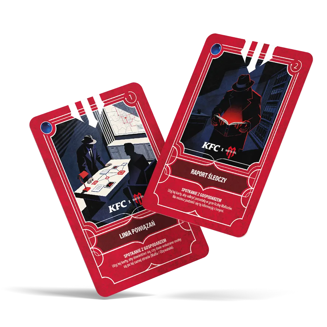 Mafia IRL × KFC to specjalna, limitowana edycja kultowej gry towarzyskiej, stworzona z myślą o szybkiej rozgrywce, napięciu i nieprzewidywalnych zwrotach akcji. To idealna gra na spotkania ze znajomymi. Przy stole, w domu lub w dowolnym miejscu, gdzie liczy się blef, obserwacja i wspólna zabawa.